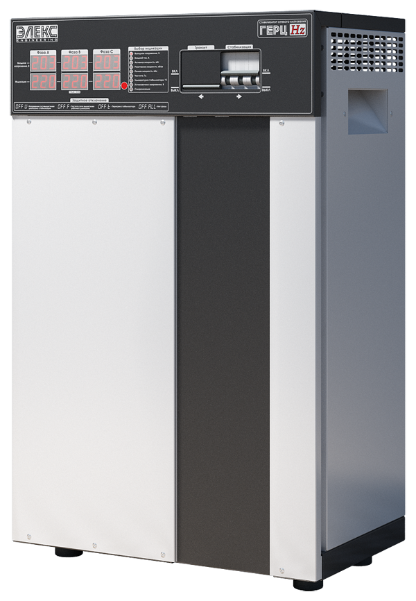 Елекс ГЕРЦ М 16-3/25 тиристорний електронний стабілізатор напруги з найменшим запасом потужності, в лінійці шістнадцятиступінчастих ГЕРЦів на три фази. Граничне навантаження, підключення якого передбачено для даного агрегату, приблизно дорівнює 16,5 кВт, що дуже непогано для приватного житлового об'єкта або малопотужного виробничого обладнання, оснащеного плавним пуском.